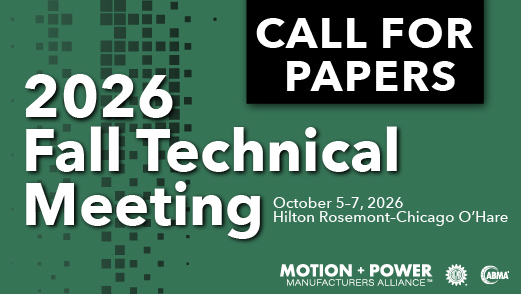 In May of 2025, the American Gear Manufacturers Association (AGMA) and the American Bearing Manufacturers Association (ABMA) merged to form the Motion + Power Manufacturers Alliance (MPMA). MPMA is now the organizer of the Fall Technical Meeting, and both gear and bearing submissions are encouraged at this event.
